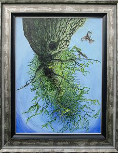 Coming Through. Acrylic. 23″ x 27″ – (painting extended onto frame) SOLD